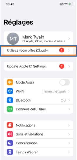 Dans les réglages de votre iPhone, cliquez sur Utilisez votre offre iCloud+.