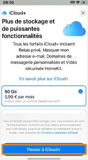 étape 3: Sélectionner le forfait iCloud+ 50 Go