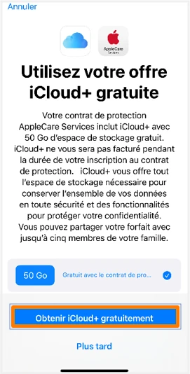 Cliquez sur Obtenir iCloud+ gratuitement.
