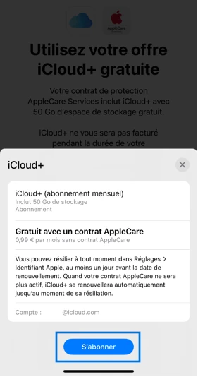 étape 4: S'abonner au service iCloud+ gratuitement