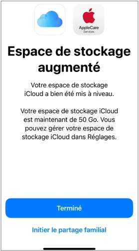 L'installation du service iCloud+ est terminé, vous pouvez maintenant gérer votre espace de stockage en allant dans Réglages > iCloud et sélectionner ce que vous souhaitez synchroniser et sécuriser.
