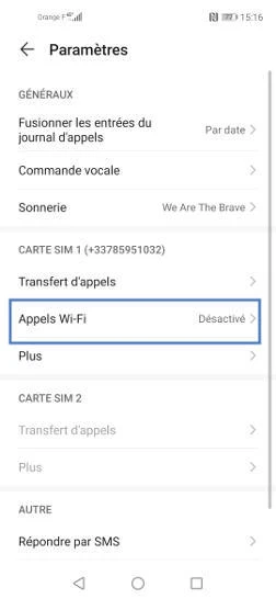 étape 4: Cliquer sur Appels Wi-FI