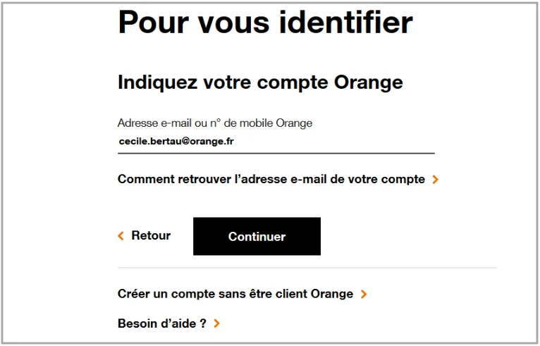 - Indiquer votre compte Orange.