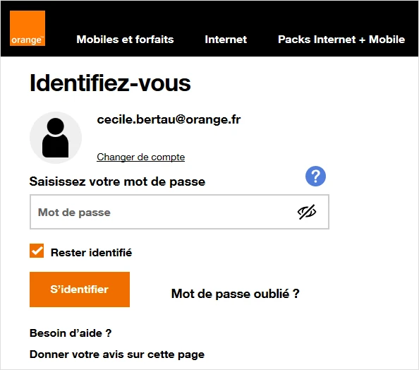 - Si vous avez une offre ligne fixe, vous devez saisir l’adresse e-mail déclarée lors la création de votre compte Orange.