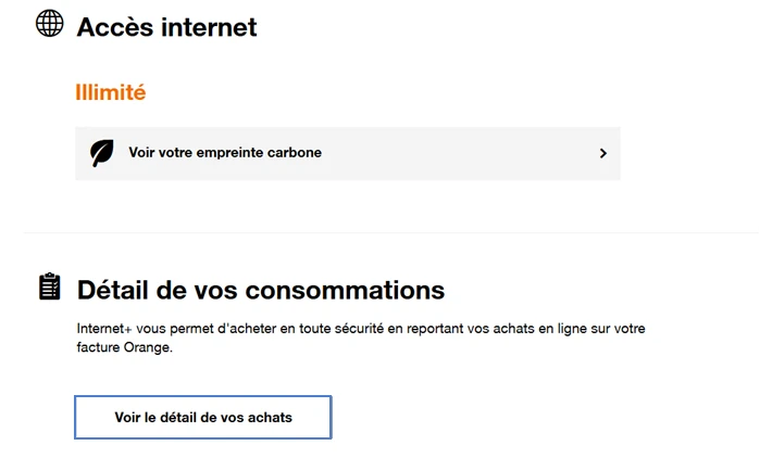 Nous savons que la maîtrise de vos achats en ligne est essentielle. C'est pourquoi nous mettons à votre disposition un moyen simple et sécurisé pour acquérir des services et des contenus numériques via internet+. Vous trouverez ci-dessous comment consulter aisément votre consommation internet+ sur les sites partenaires, identifiables par le logo internet+ ou la mention de paiement sur votre facture Orange.