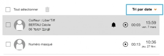 Dès la page d’accueil du site web, vous visualisez la liste des messages vocaux enregistrés sur votre messagerie, le nombre de nouveaux messages et l’état de remplissage de votre messagerie.