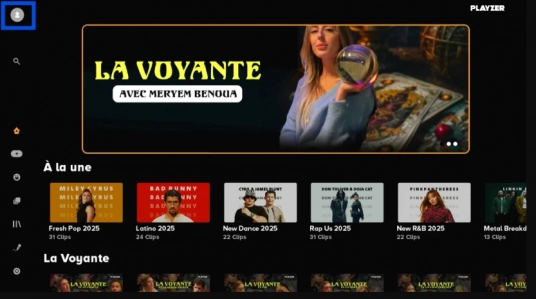 Sélectionnez en haut à gauche l'icône de Votre compte Playzer.