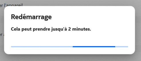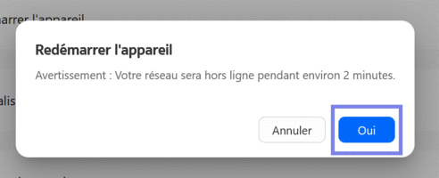 Confirmez le redémarrage en sélectionnant Oui. le redémarrage peut prendre 1 à 2 minutes. |