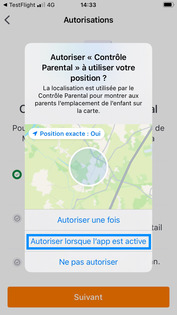 Choisissez Autoriser lorsque l'app est active. |