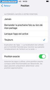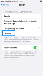 Revenez dans l'application Contrôle Parental (enfant). |