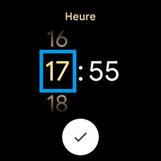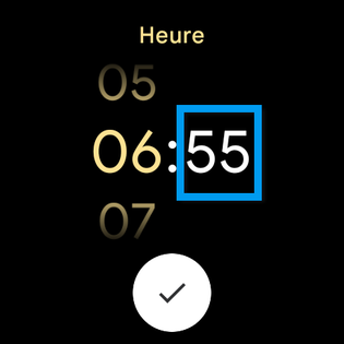 Allez sur le nombre des minutes (ici en blanc) pour accéder à leur modification.  |