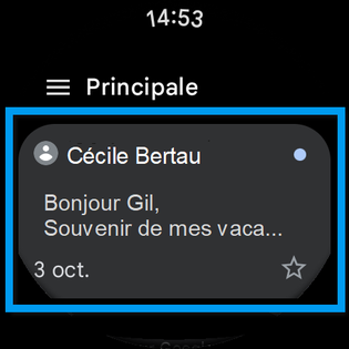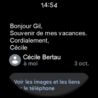 À la réception d'un mail, le message s'affiche directement sur la montre.