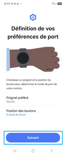 Définissez vos préférences de port puis continuez Suivant. - Choisissez votre poignet préféré. |