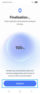 Patientez pendant la finalisation de la configuration de la montre avant de cliquer sur Explorer. |