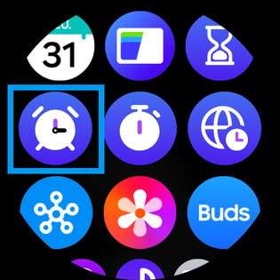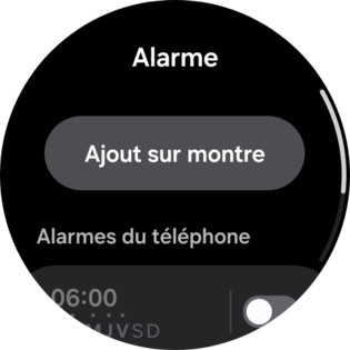 Faites défiler l'écran, puis sélectionnez l'application représentée par un réveil. |