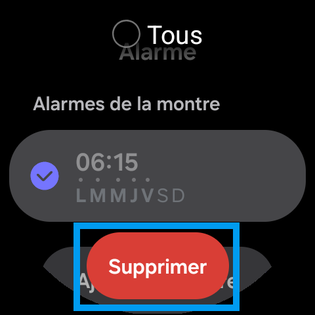 Maintenez une pression sur l'alarme à supprimer. |
