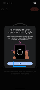 Assurez-vous de ne pas couvrir les bords supérieurs avec vos mains. Cliquez sur OK. les antennes qui permettent de capter les satellites sont situées dans la partie supérieur de votre mobile. |