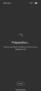 Il est nécessaire que vous soyez à l'extérieur avec une vue dégagée sur le ciel (sans obstacle) pour que la recherche des satellites soit optimale. |