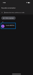 Choisissez votre correspondant (exemple : Cécile BERTAU). vous pouvez aussi saisir un numéro de mobile s'il n'est pas répertorié dans vos contacts. |