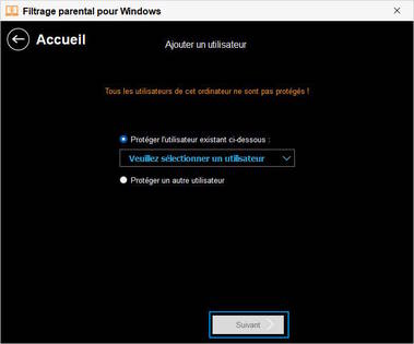 si vous avez créé un compte utilisateur associé à un utilisateur existant sur votre système Windows, l'utilisateur est protégé dès qu’il se connecte sa session Windows.
