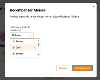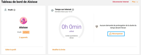 La fonctionnalité de récompense permet au parent d’offrir du temps de connexion à Internet à tout moment de la journée voire plusieurs fois au cours d’une même journée.