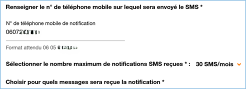 Ensuite, sélectionner le nombre maximum de notifications SMS que vous souhaitez recevoir par mois.