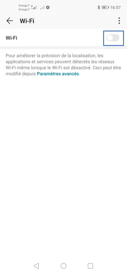 Lorsque le Wi-Fi est désactivé, faites glisser le curseur Wi-Fi vers la droite pour activer la fonction.