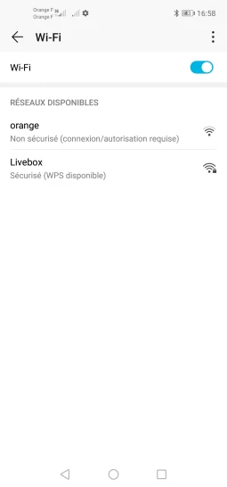 Le Wi-Fi est maintenant activé et les réseaux disponibles s'affichent.Vous devez maintenant vous connecter à une Livebox.Pour désactiver le Wi-Fi, faites glisser le curseur Wi-Fi vers la gauche.