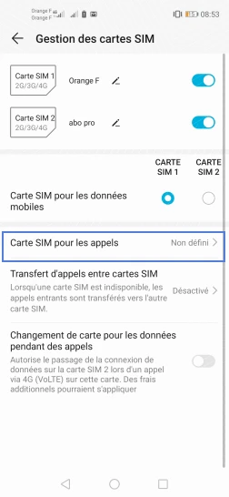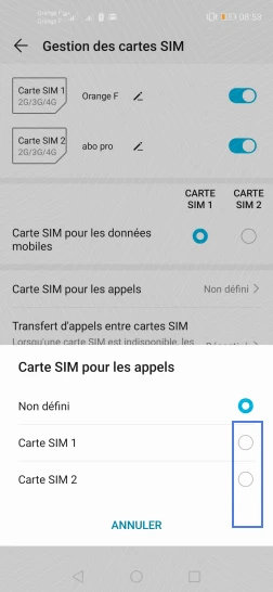 Choisir la carte SIM pour les appels