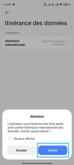 Activer les données mobile à l'étranger