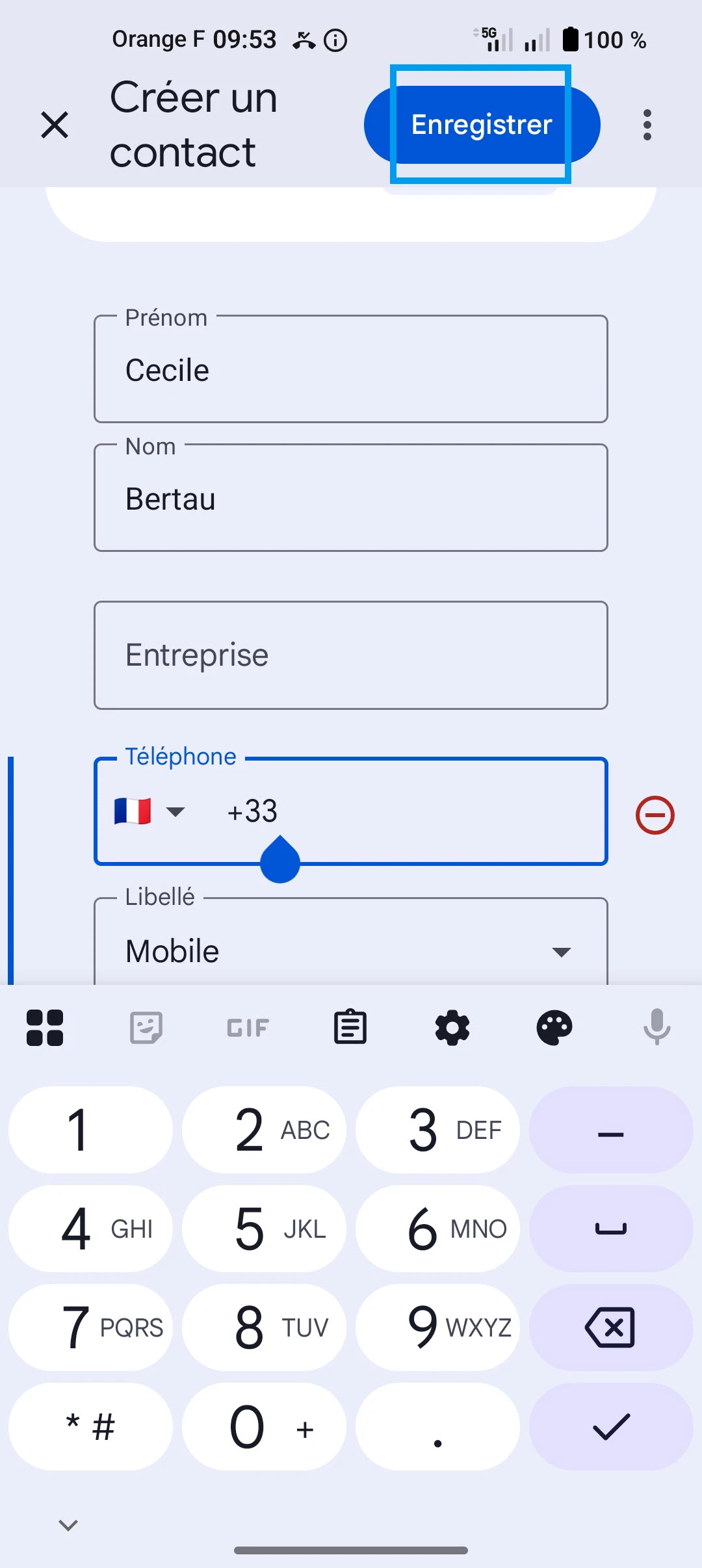 Ajouter un contact dans le répertoire
