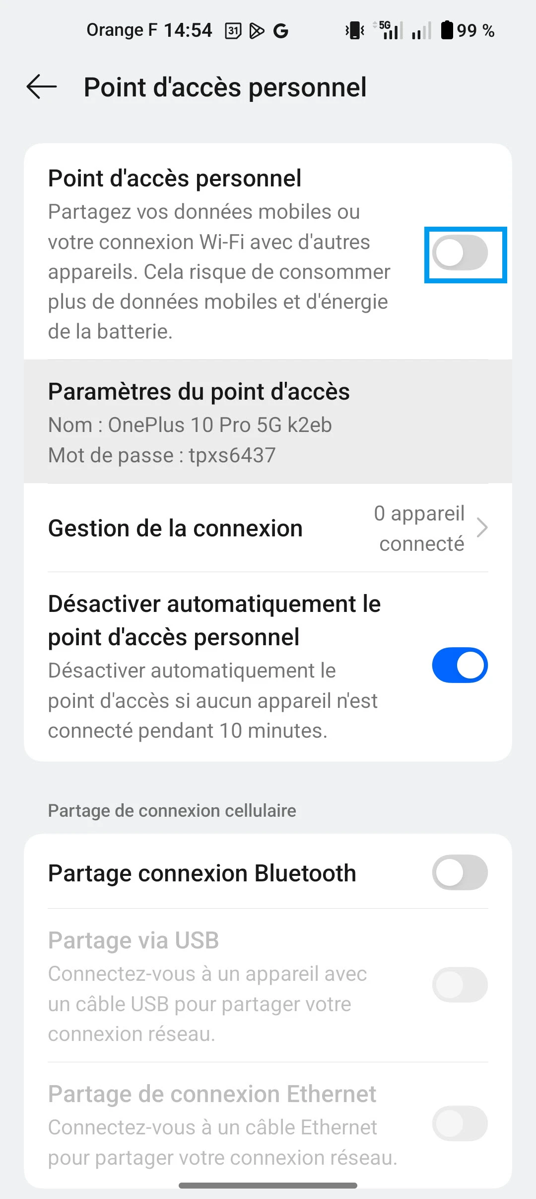 Activer le partage de connexion