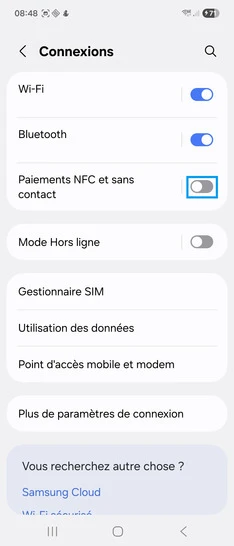 Activer et désactiver la fonction NFC