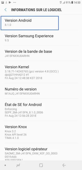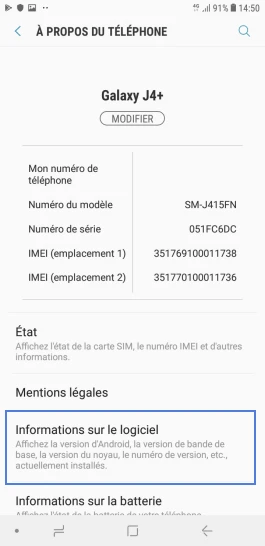 pour votre Samsung Galaxy J4+ ou Modifier le téléphone sélectionnéAfficher la version logicielle