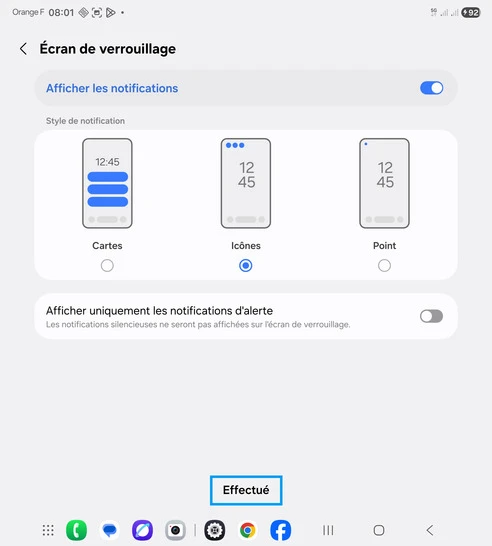 Écran de verrouillage : cliquez sur Effectué.