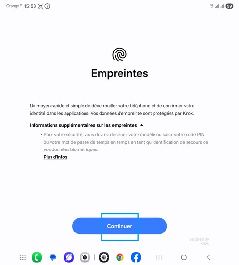 Empreintes : allez sur Continuer.