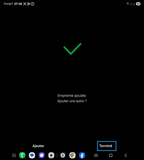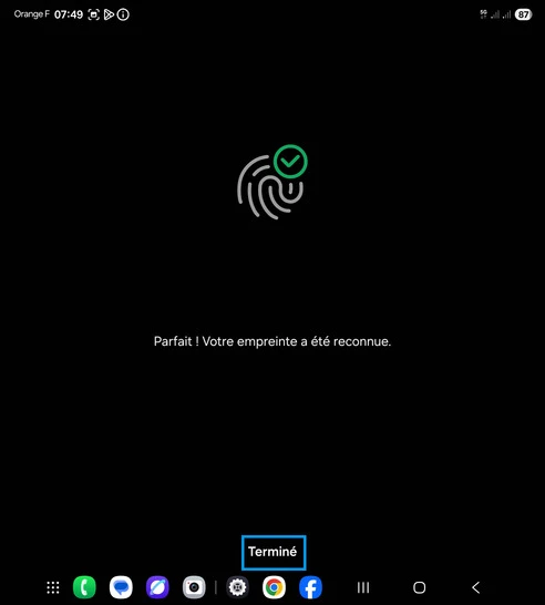 L'empreinte est reconnue, allez sur Terminé.