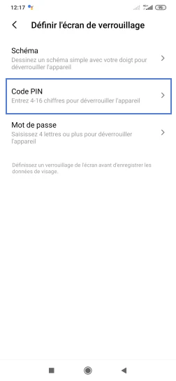 Choisissez-en un parmi les propositions. Dans le cadre de notre démonstration, sélectionnez Code PIN.