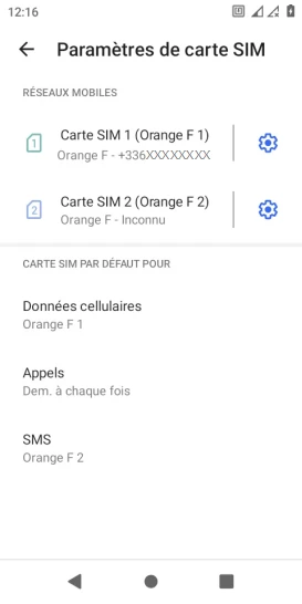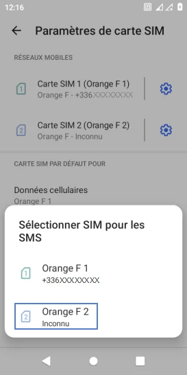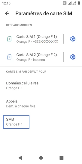 Choisir la carte SIM pour les SMS