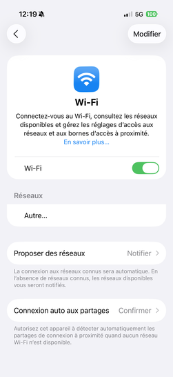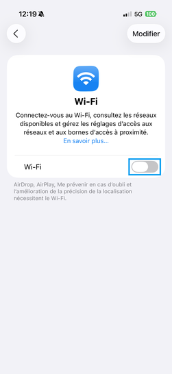 Étape 1 :  Depuis la page d'accueil, sélectionnez Réglages. Étape 2 : Allez sur Wi-Fi. Étape 3 : Allez sur le bouton virtuel correspondant à Wi-Fi. Étape 4 : La liaison sans fil Wi-Fi est activée (le pourtour du bouton virtuel est passé au vert).vous pouvez maintenant vous connecter à une Livebox. Cela vous permettra de réduire l'impact sur votre forfait mobile et d'utiliser le réseau wifi en lieu et place si nécessaire.Nous sommes là pour vous assurer une transition fluide vers une connectivité wifi optimale.