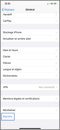 Eteindre votre téléphone en 4 étapes difficulté Débutant