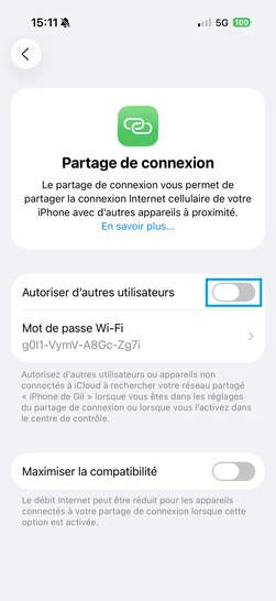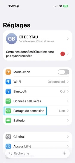 pour votre Apple iPhone 12 Pro ou Modifier le téléphone sélectionnéActiver le partage de connexion