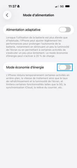 pour votre Apple iPhone 13 Pro ou Modifier le téléphone sélectionnéActiver le mode économie d'énergie