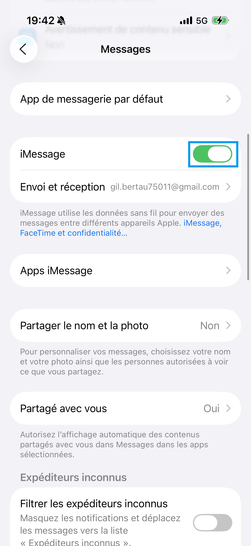 Activer ou désactiver la fonction iMessage en 5 étapes difficulté Débutant