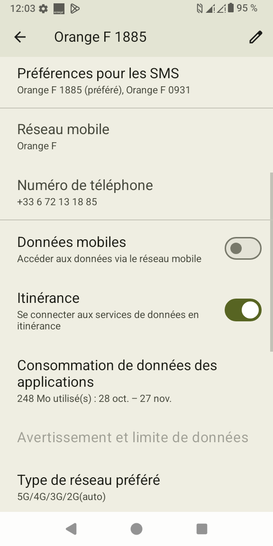 pour votre Crosscall Stellar-X5 5G ou Modifier le téléphone sélectionnéActiver les données mobile à l'étranger