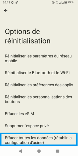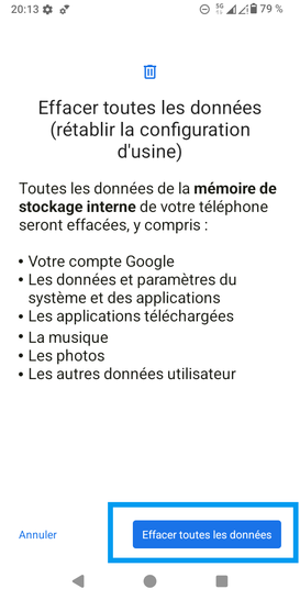 Pensez à sauvegarder vos données personnelles et à désactiver votre compte Google avant la réinitialisation de votre mobile.