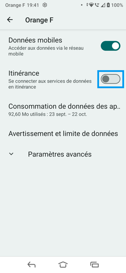 Activer les données mobile à l'étranger