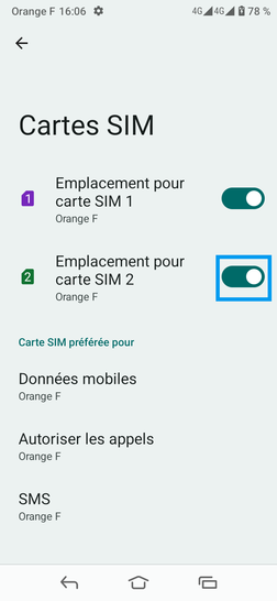 Désactiver le mode dual SIM