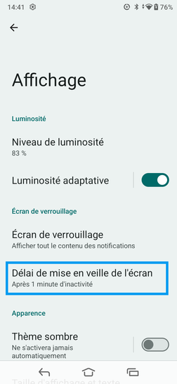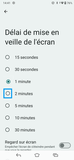 La nouvelle temporisation a été prise en compte.En cas d'inactivité, le mobile se verrouillera automatiquement au bout de 2 minutes.