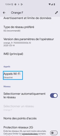 pour votre Google Pixel 10 5G ou Modifier le téléphone sélectionnéActiver les appels Wi-Fi